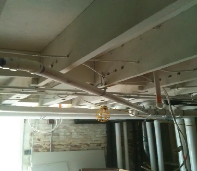 The building owner wanted the intumescent fire protection to be installed because the alternative would have been to place 5/8 Gypsum board on the assembly. With all the wires and pipes this was impossible to achieve easily. The paint-like coating allowed the job to be completed within a few days and not weeks.